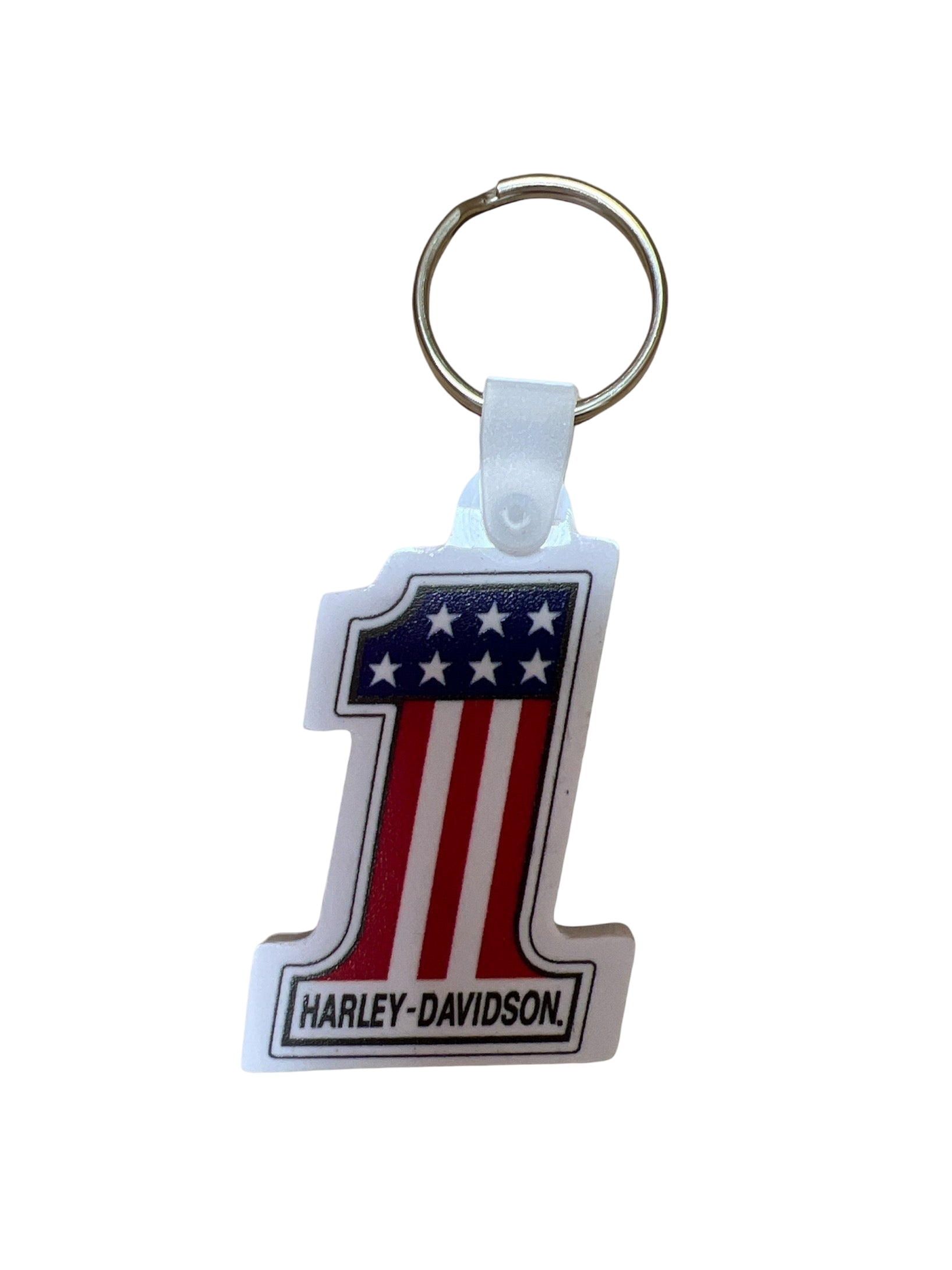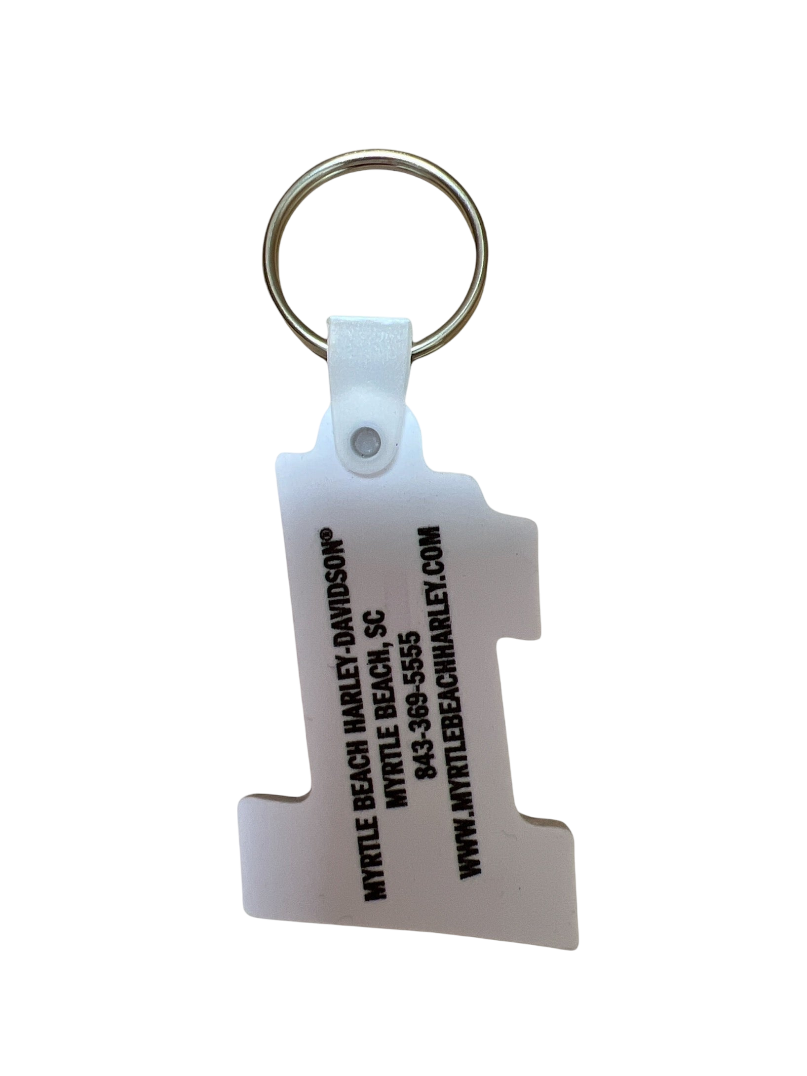 #1 Design Rubber Keychain with Myrtle Beach Harley-Davidson Printed on Back