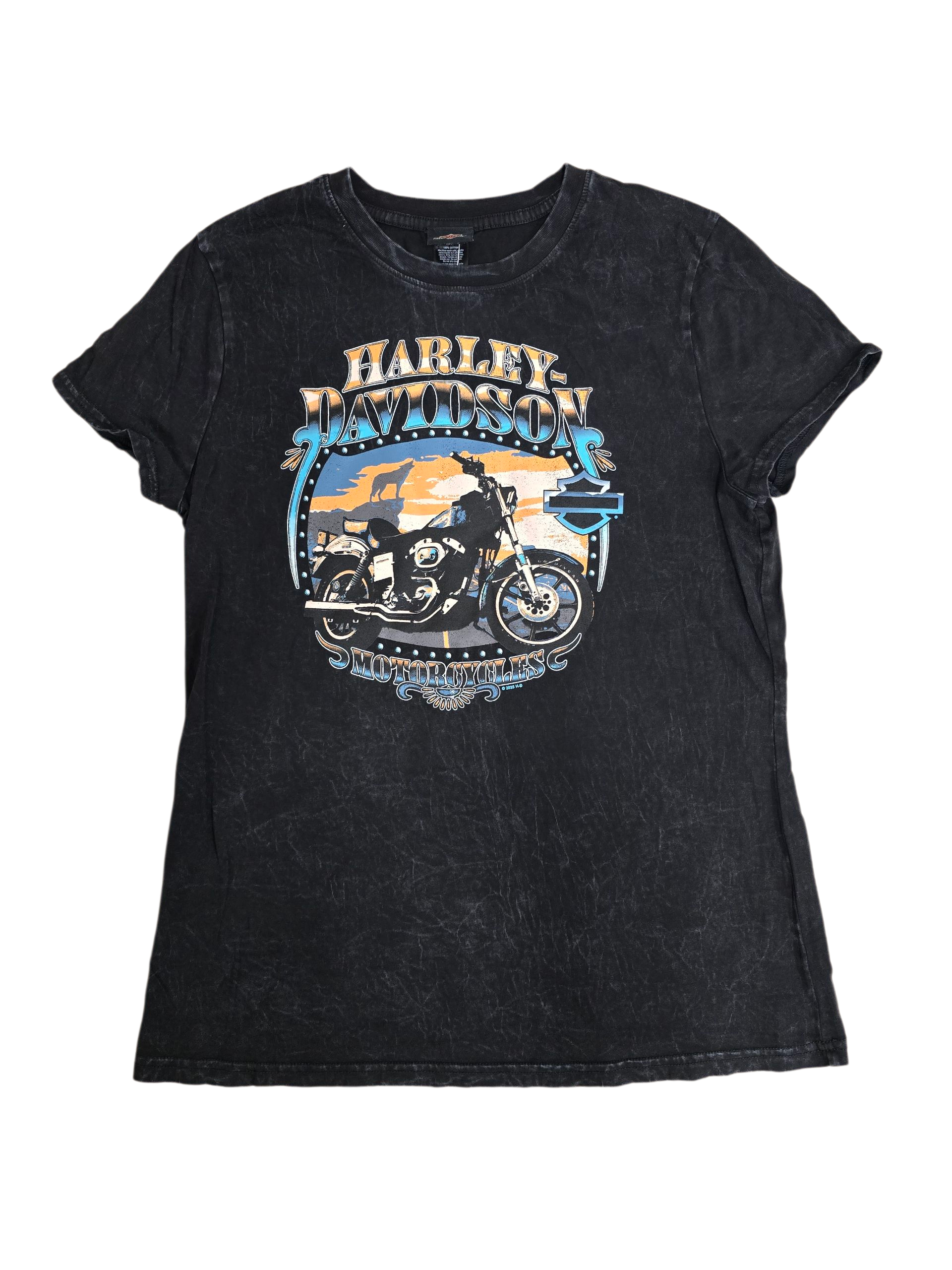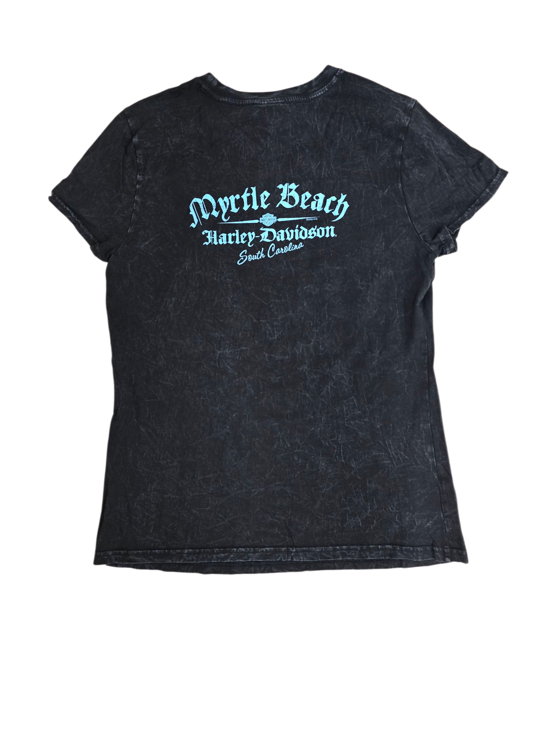 This Collectible Women's Tee with Myrtle Beach Harley-Davidson Logo on the back features Harley-Davidson on the front.