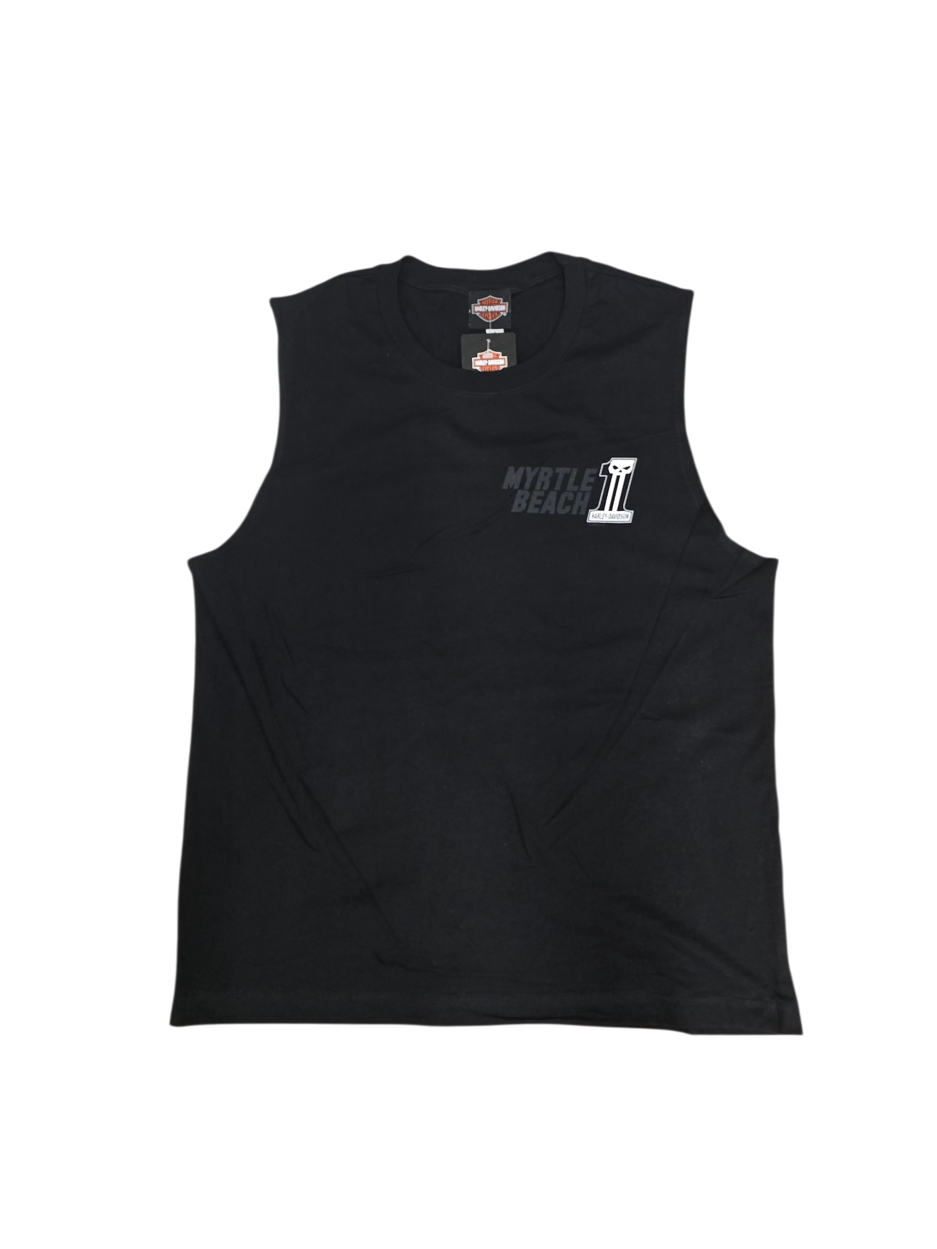 This Collectible Men's Tee with Myrtle Beach Harley-Davidson Logo on the back features Harley-Davidson on the front.