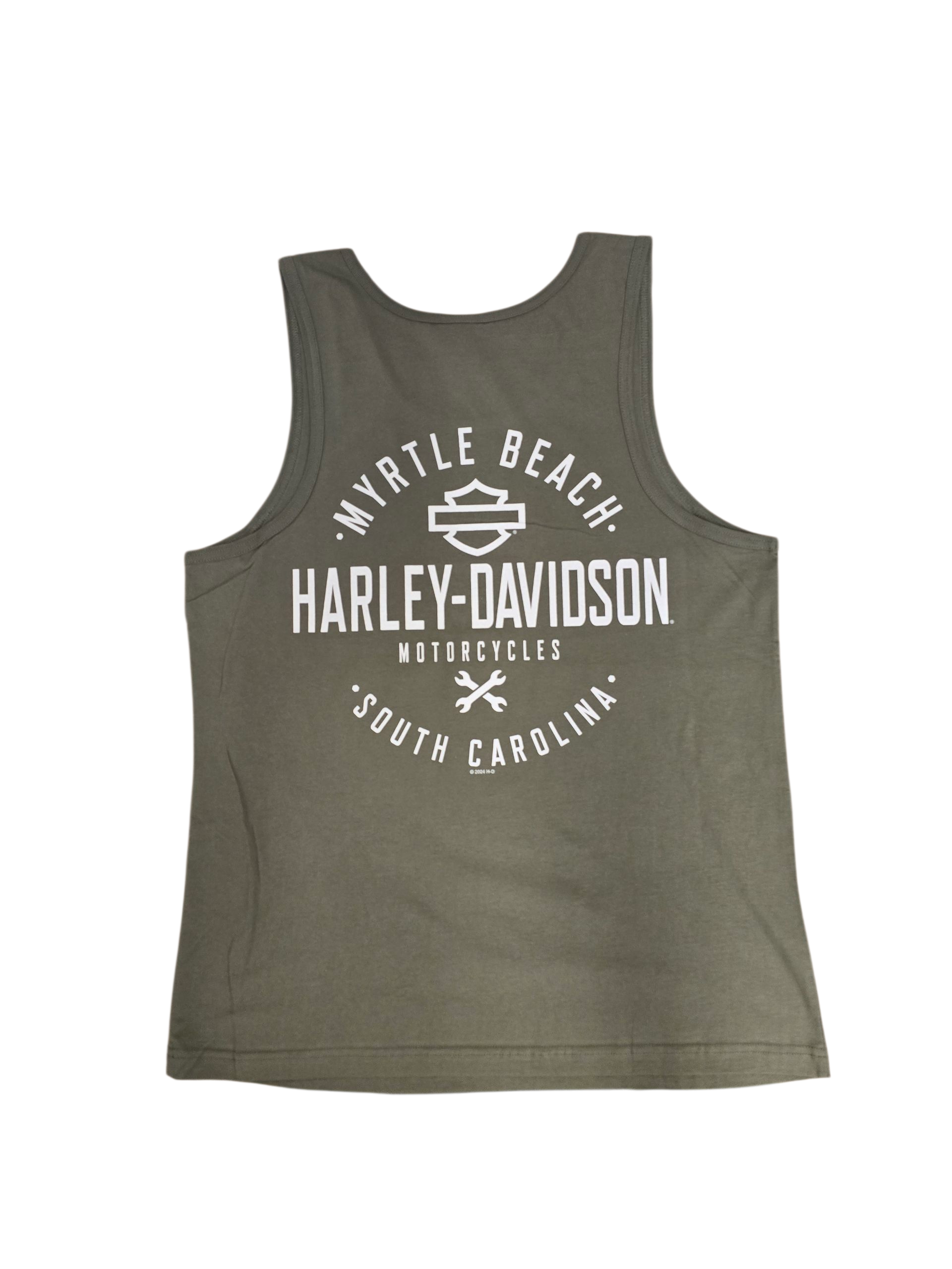 This Collectible Men's Tee with Myrtle Beach Harley-Davidson Logo on the back features Harley-Davidson on the front.