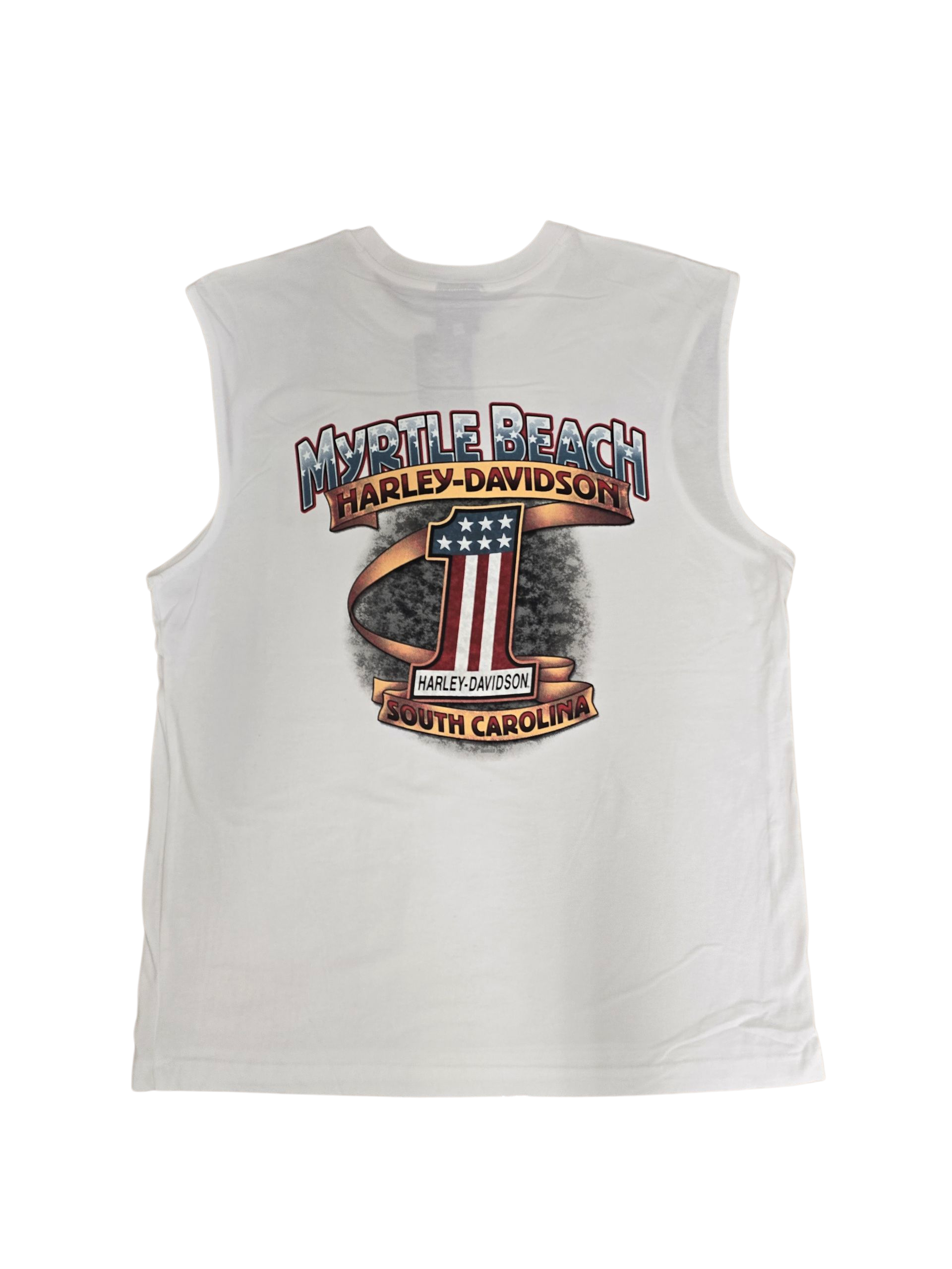 This Collectible Men's Tee with Myrtle Beach Harley-Davidson Logo on the back features Harley-Davidson on the front.
