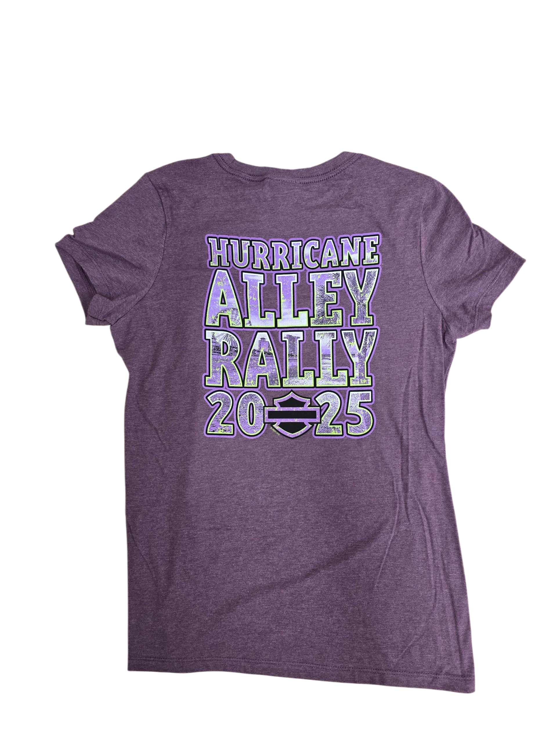 This Collectible Women's Tee features a custom 2025 Hurricane Alley Rally logo.