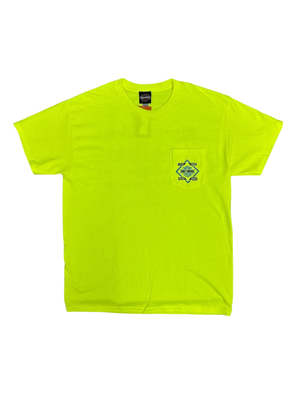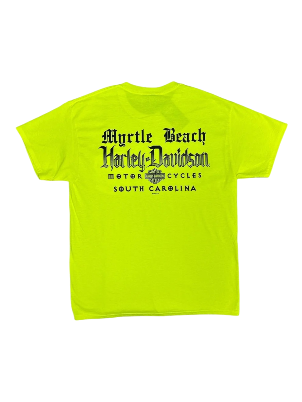 This Collectible Men's Pocket Tee features Myrtle Beach Harley-Davidson Logo on the back has Harley-Davidson on the front