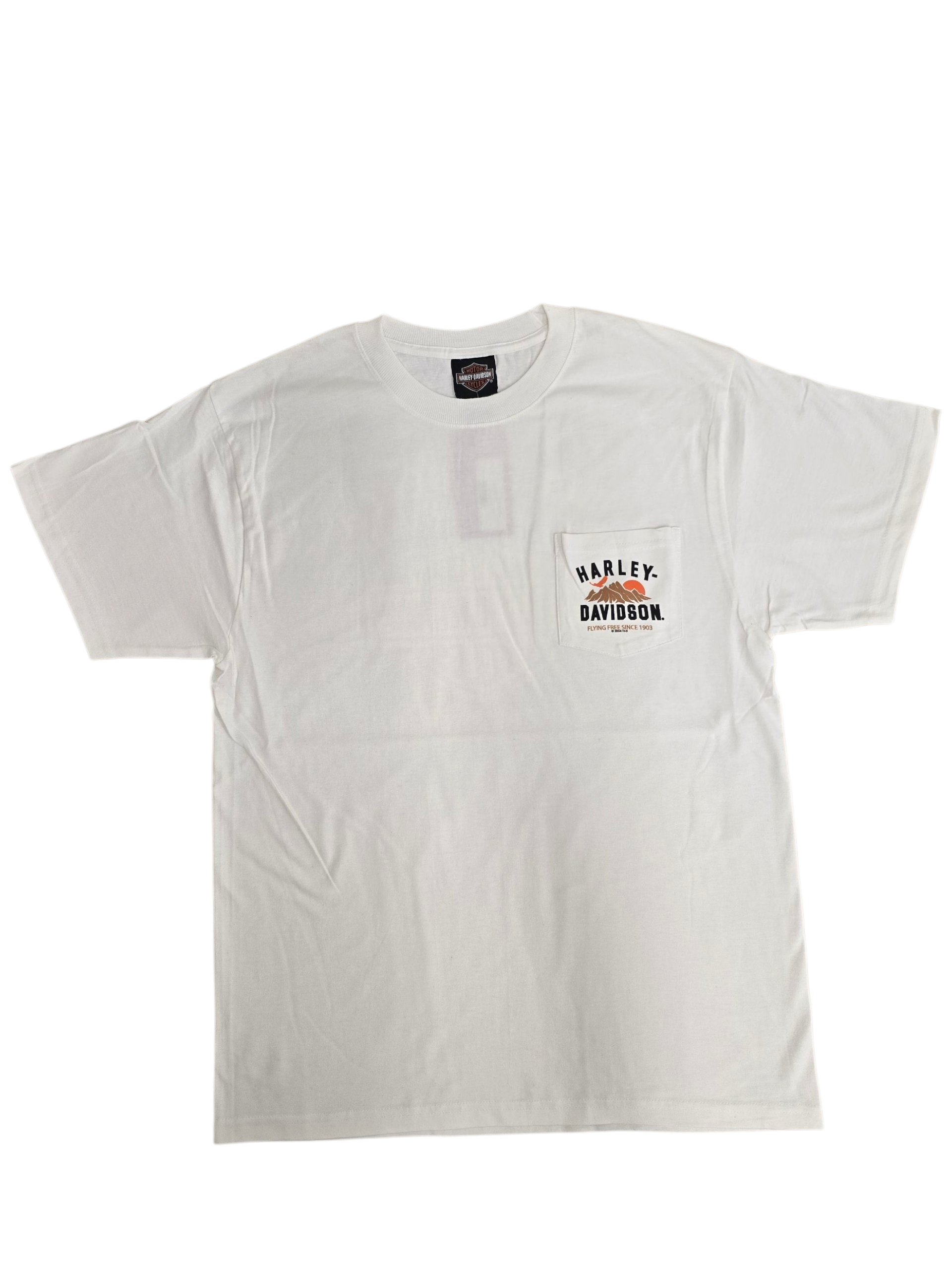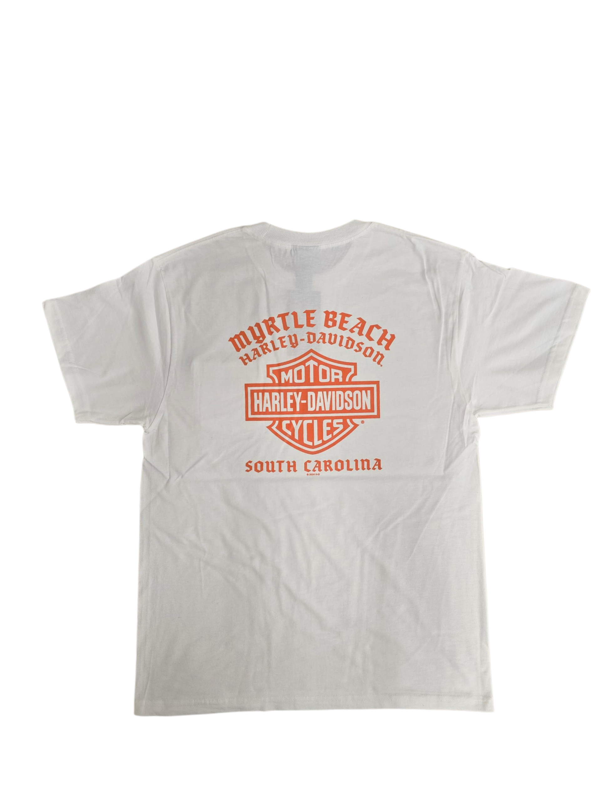 This Collectible Men's Pocket Tee features Myrtle Beach Harley-Davidson Logo on the back has Harley-Davidson on the front