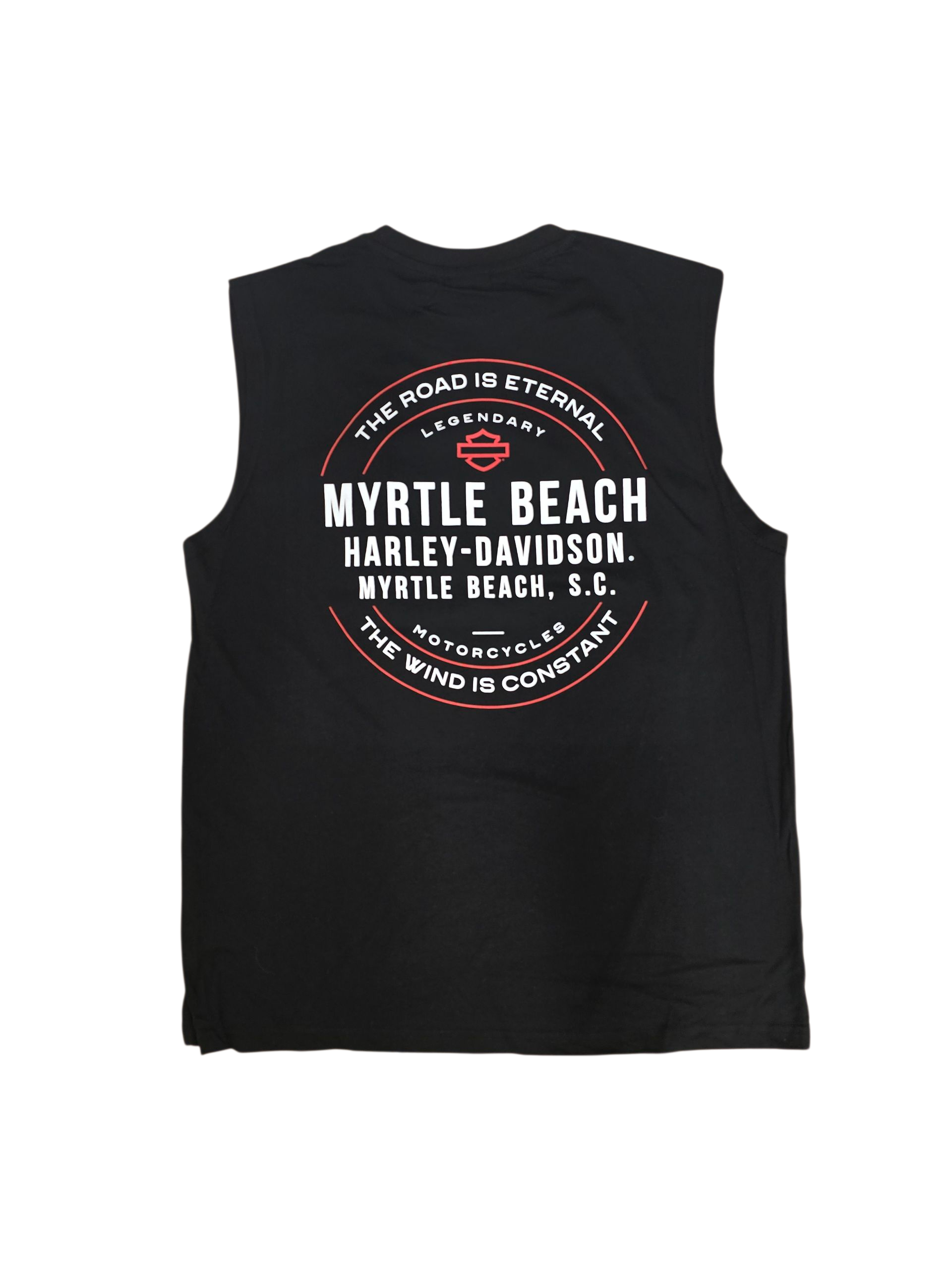 This Collectible Men's Tee with Myrtle Beach Harley-Davidson Logo on the back features Harley-Davidson on the front.